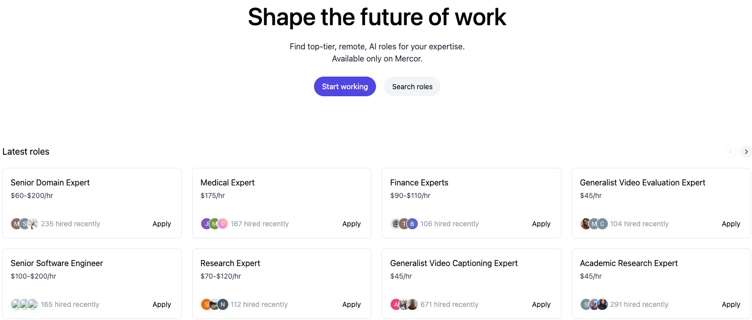 这种需求也反应在 Mercor 的快速增长中,3 月份的时候 Mercor 的年化收入刚突破 1 亿美金《从 100 万到 1 亿美金收入,AI 招聘平台 Mercor 只用了 11 个月》。