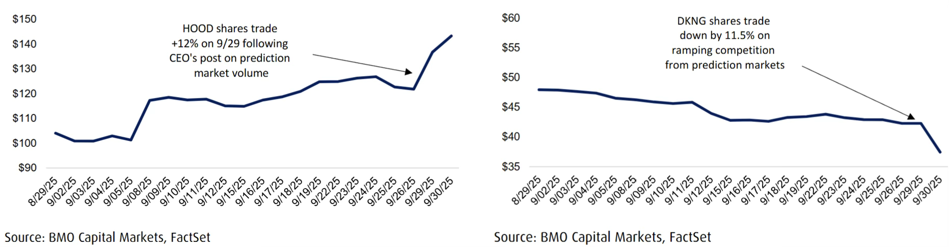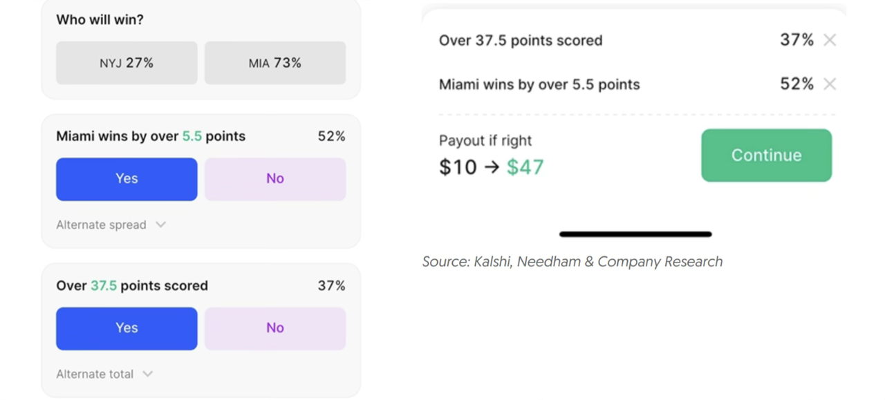 此前不少人认为 Kalshi 缺乏完整的体育博彩功能难成气候,但 2025 年 9 月 30 日 Kalshi 推出了 Parlay(串关)功能——允许将多个投注组合在一起、全中则收益倍增。消息发布后,Flutter 与 DraftKings 股价两天内跌超 15%。