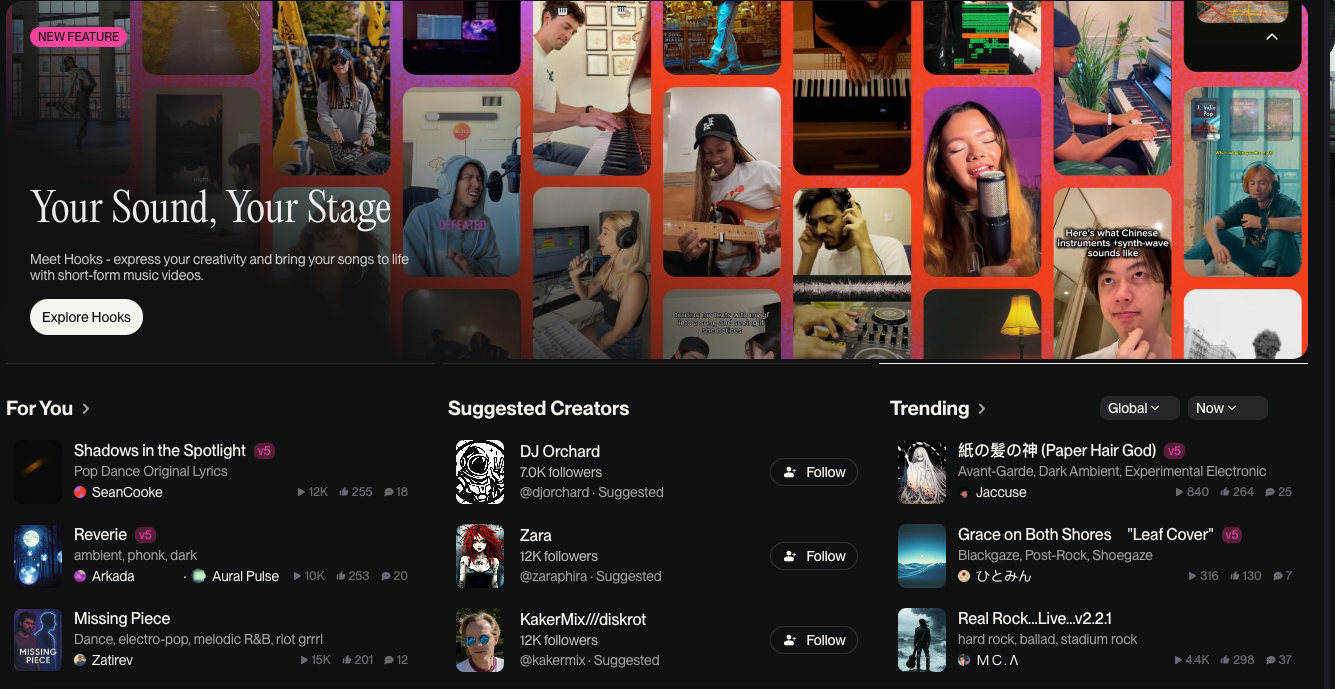 个体创作者和音乐爱好者:包括业余音乐家、内容创作者(如 YouTuber、TikTok 用户)以及普通用户。这些人使用 Suno 生成个性化歌曲或背景音乐。