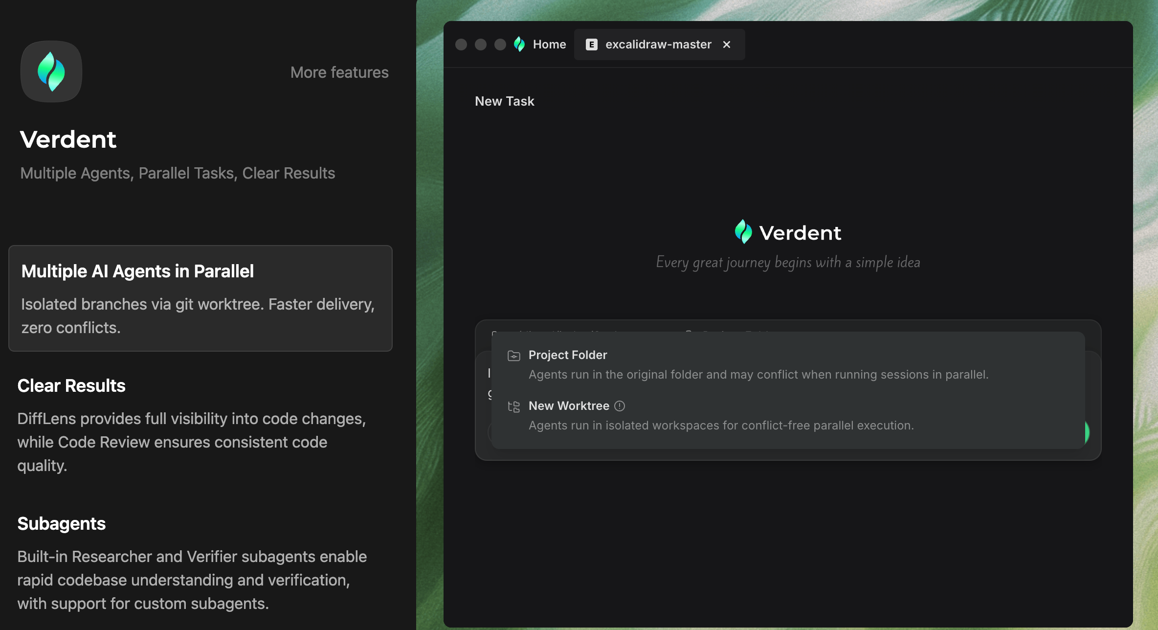 Verdent Deck(桌面 App)允许多个子 Agent 在隔离的 Git 环境(git worktrees)里运行,避免相互干扰。UI 形式目前有两种产品形态:一种是 Verdent Deck — 桌面应用(目前支持 macOS,未来计划 Windows);另一种是 Verdent for VS Code — VS Code 插件,直接在开发环境内,Agent 协作 +验证 +任务分解。