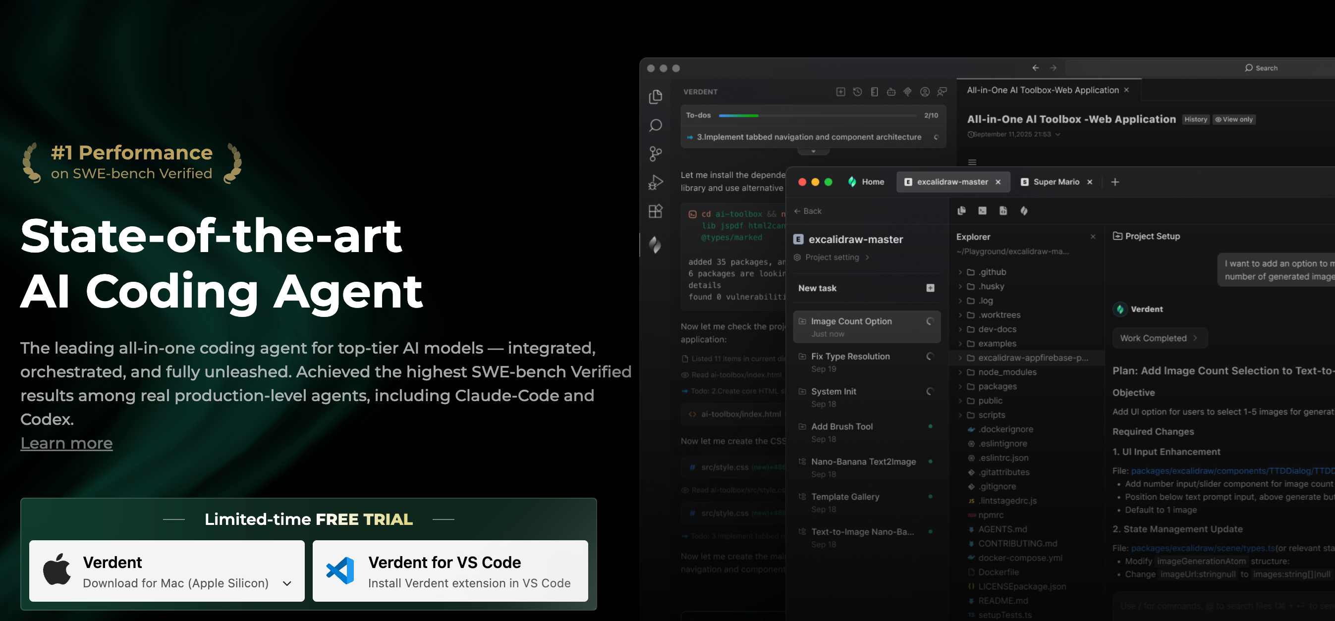 支持 “计划 → 编码 → 验证” 的闭环:Verdent 有一个 “Plan Mode”(规划模式),可以把开发者给出的模糊任务转成结构化行动计划,然后多个 Agent 并行执行,最后又进行结果验证。
