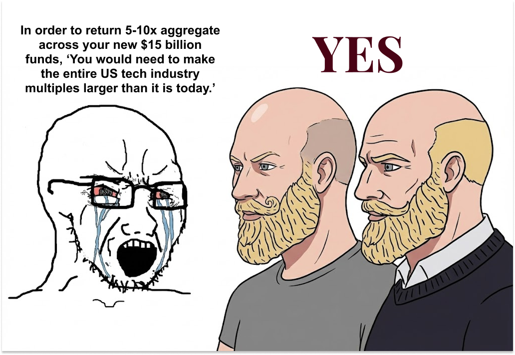 尽管 2025 年是整个 VC 行业募资规模最少的一年,但据说 a16z 整个募资时间只用了 3 个月就完成了,说明 LP 对 a16z 的未来非常看好。