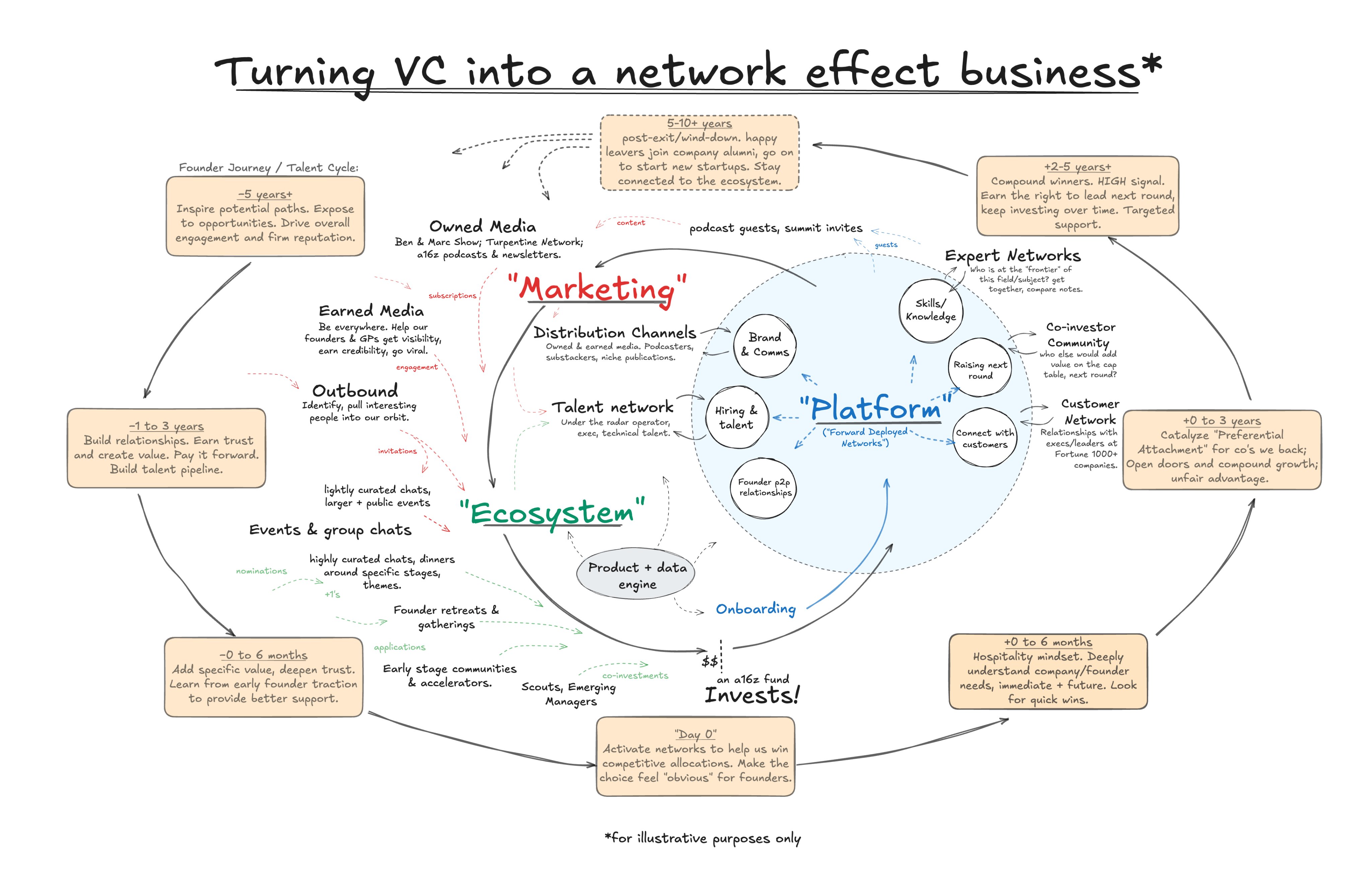 其次,a16z 提供的不仅是钱,而是一种力量,这包括 3 种能力:合法性,a16z 的背书可以让公司在政府、企业、客户面前更容易被信任;销售与商业网络,帮助公司与大型企业合作、引入企业级客户,甚至建立战略合作;人才与招聘资源。最后是其强大的媒体 & 品牌力量。